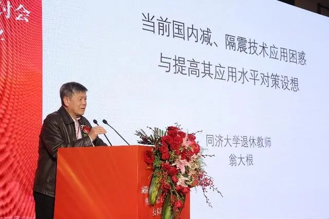 本次會議共邀請到了4位學術和業界專家進行現場分享,同濟大學教授、中國工程院院士呂西林以《韌性城市與防震減災》為題,四川大學教授、國家高層次人才計劃專家戴靠山以《四川省減隔震技術發展和震害啟示》為題,同濟大學教授翁大根以《當前國內減隔震技術應用因惑與提高其應用水平對策設想》為題,同濟大學防災減災工程系研究員張瑞甫以《解鎖慣容減震技術-從理論到實踐》為題分別作了減隔震技術領域的主題報告。